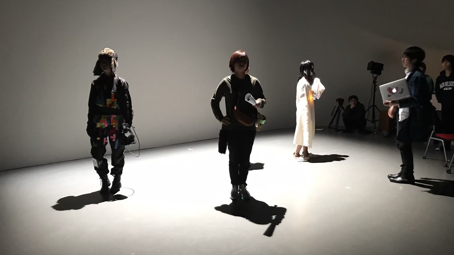 投影された映像の光に干渉する人や影も撮影することで、「映像に溶け込む学生たち」「学生が触れてきた映像学」という思いを表現できたように思います。