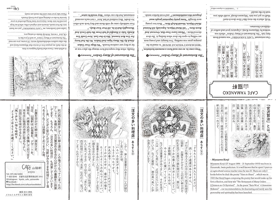 宮沢賢治「注文の多い料理店」から店名を拝借しているというところから、待ち時間のあいだに内容をさらっと楽しめるためにと、日本語と英語で書かれた小冊子です。